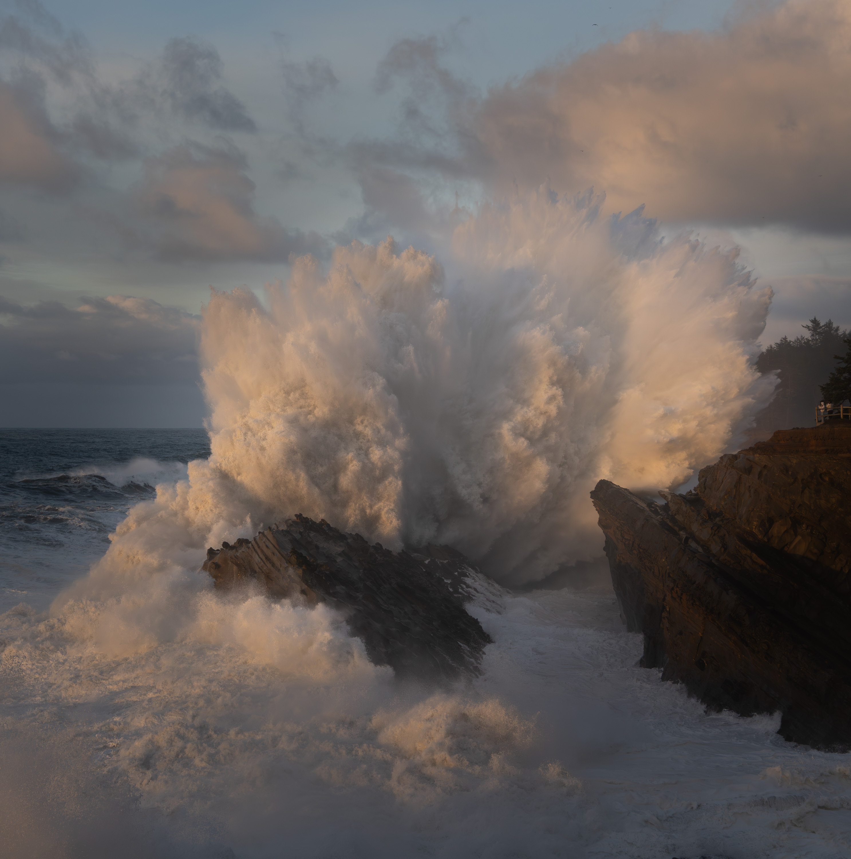 We continued south staying in Newport one night. We spent a good portion of the workshop staying in Bandon OR. I’d say our biggest and best waves were from viewpoints in Shore Acres State Park. While we were shooting, some locals told us these were some of the largest waves they could remember. Its hard to tell in some of the images but a few of these crashing waves had to be over 100 ft tall gauging by how they towered over the cliffs.
