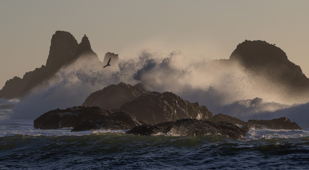 I attended Nick Page’s Winter Waves workshop on January 4-9th 2026. I had interest in this for a number of years as I had been fascinated with the large surf images (King Waves) of the Oregon coast. Nick has developed some expertise in this area so I decided to attend his workshop. I was not dissapointed. He takes his job very seriously and works hard to put us in situations to get the best images we can. His expertise in interpreting surf charts and tides was really helpful. He taught us how to interpret wave charts via apps to understand where we might see the best waves.